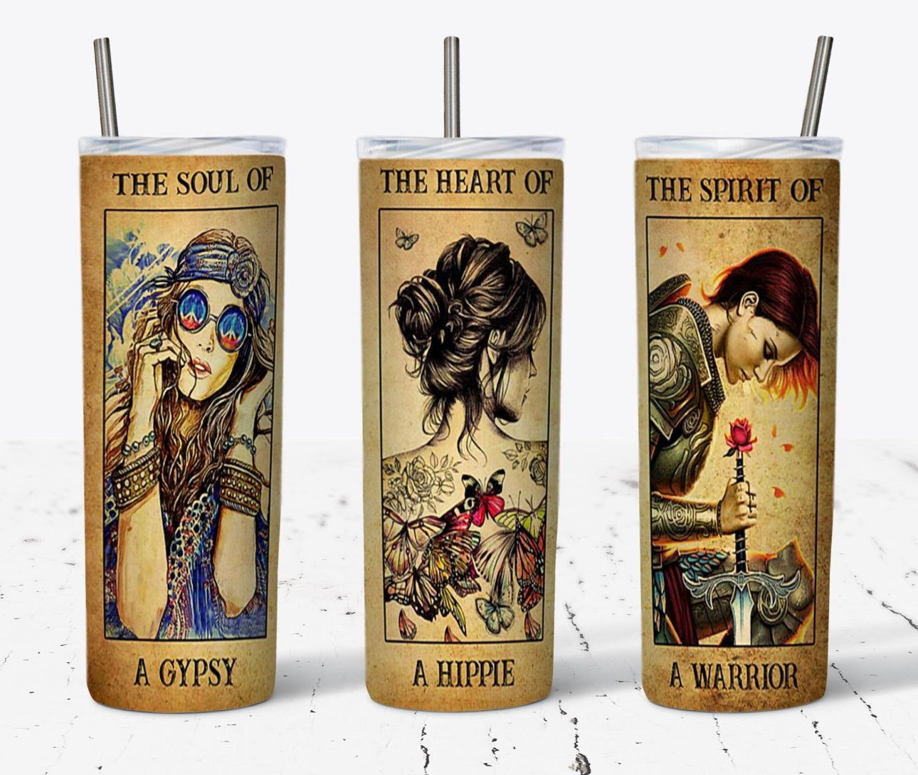 Beautiful bohemian tumbler, Gypsy soul, hippie heart and warrior spirit